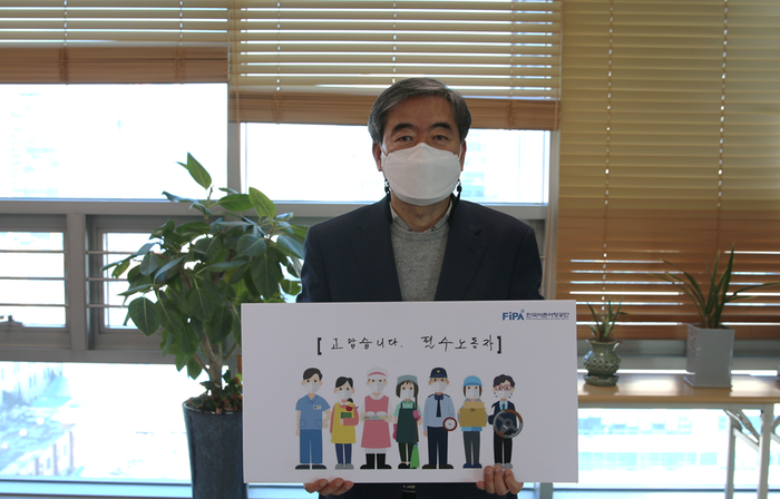 이번 캠페인은 서울시 성동구청장을 시작으로 사회 각계 인사들이 자율참여 중에 있으며, 최명용 공단 이사장은 신현석 한국수산자원공단 이사장으로부터 지목을 받아 필수노동자들의 노고에 감사와 격려의 마음을 전했다.