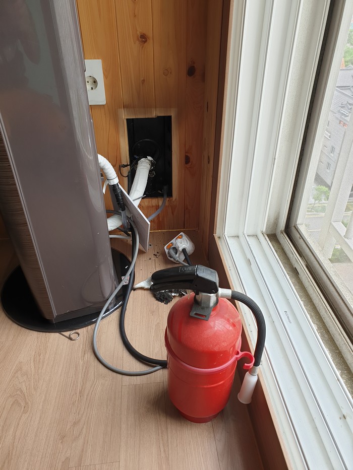 | 에어컨 실외기 화재 자체 진화 사진 |