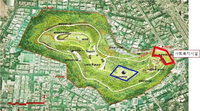 | ▲ 2단계 공사구간 : 강선대마당(파란색), 산책로 전체 정비 |