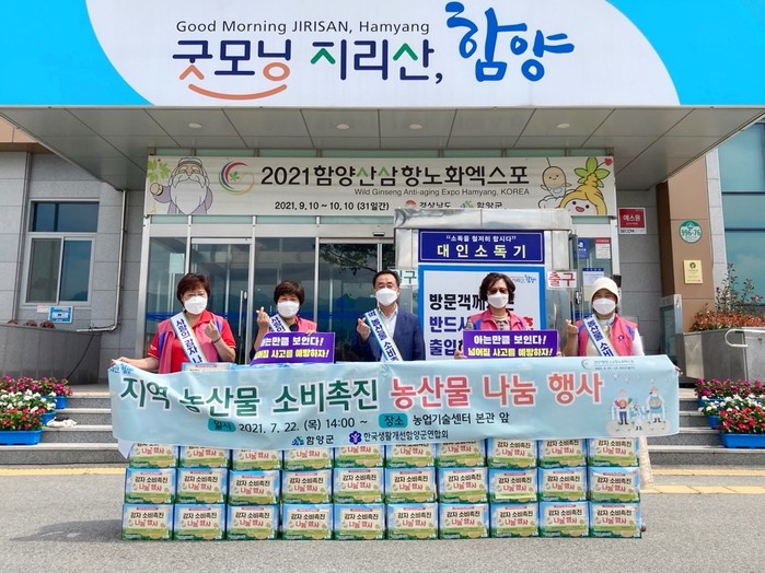함양군은 21일 농업기술센터 본관 앞에서 한국생활개선함양군연합회 임원들이 참석한 가운데 ‘지역농산물 소비촉진 및 농작업 안전실천 홍보’를 추진했다.