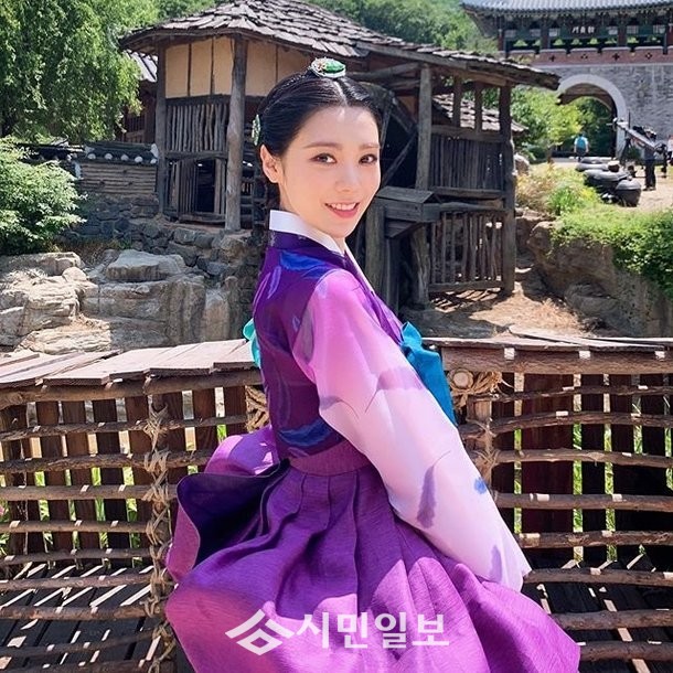 공개된 사진 속 박수아는 곱게 댕기머리를 하고 보라색 한복을 입고 있다.
