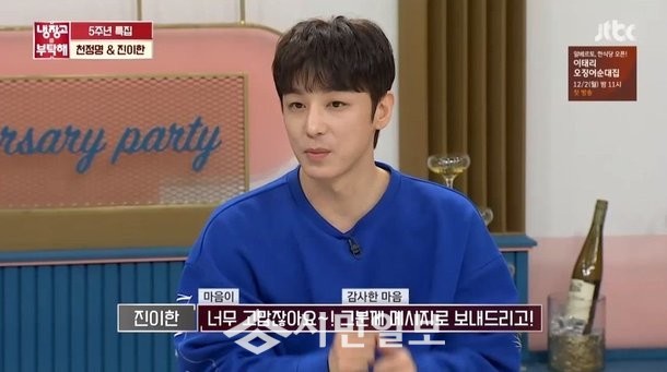 최근 방송된 JTBC ‘냉장고를 부탁해’에는 천정명과 진이한이 게스트로 출연해 두 번째 이야기로 구성됐다. 지난주 천정명의 냉장고에 이어 이번주는 진이한의 냉장고가 공개된 것.