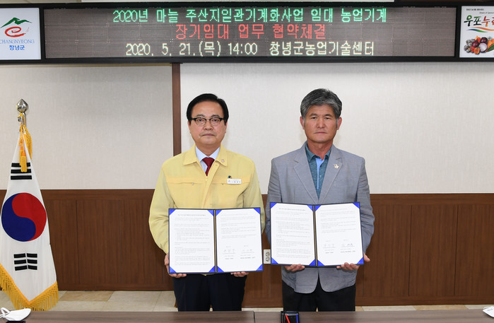 창녕군(군수 한정우)은 지난 21일 창녕군농업기술센터에서 창녕마늘영농조합법인(대표 성연준)과 마늘 주산지일관기계화사업 농업기계 장기임대 업무협약을 체결했다.