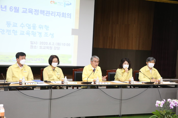 이번 회의에서는 ▲학교가 학생의 안전과 교육과정 운영에 집중할 수 있는 도교육청 차원의 업무 정비 결과 공유 ▲순차적 등교수업 이후 발생할 수 있는 교육정책・현안에 대한 지원 방안 안내 ▲등교수업 실시 후 학교 현장 실태 점검과 극복 방안을 논의했다.