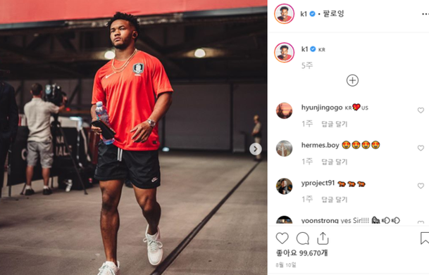 NFL(미국프로풋볼) 슈퍼루키 카일러 머레이(애리조나 카디널스)가 한국 축구대표팀 유니폼 선물을 인증했다.