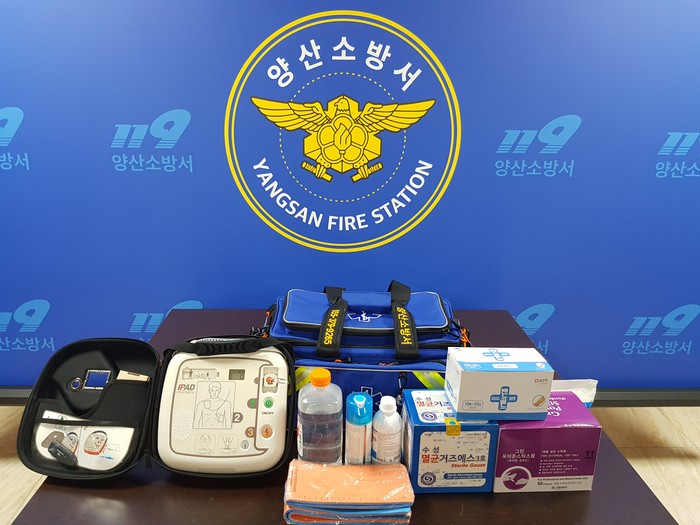 양산소방서(서장 김동권)는 심정지 환자 등 응급환자가 발생할 경우 구급대가 도착하기 전 관계자의 신속한 초기 대처로 생존율을 높이기 위해 자동심장충격기 등 응급처치 장비를 공유한다고 밝혔다.