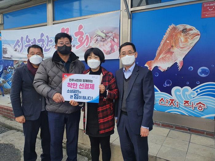 진주시 수출기업 협의회(회장 송균호)는 코로나19로 타격을 입은 소상공인 지원을 위해 지난 10일부터 오는 31일 까지 진주시에서 추진하고 있는 소비 촉진 운동 ‘착한 선결제 캠페인’에 동참했다.