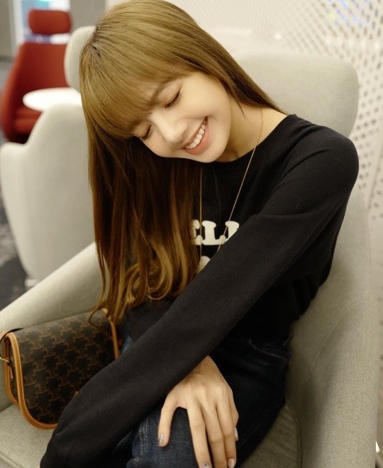 공개된 사진 속 리사는 인천공항 제2터미널의 한 의자에 앉아 휴식을 취하고 있다. 리사의 금발색 긴 생머리는 입고 있는 어두운 계열의 티와 청바지에 대비되어 시선을 이끌었다. 편안한 차림에도 돋보이는 미모가 감탄을 자아낸다.
