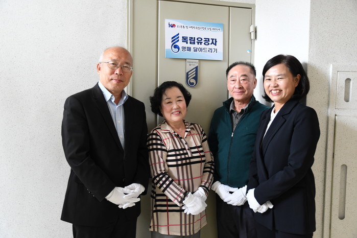 이 날 행사에는 지난 3.1운동 100주년 기념식에서 독립유공자 포상을 전수 받아 신규 독립유공자 유족으로 등록된 故 윤영만 선생 유족 댁에 권율정 부산지방보훈청장과 서은숙 부산진구청장이 함께 독립유공자 명패를 부착해 그 의미를 더했다.