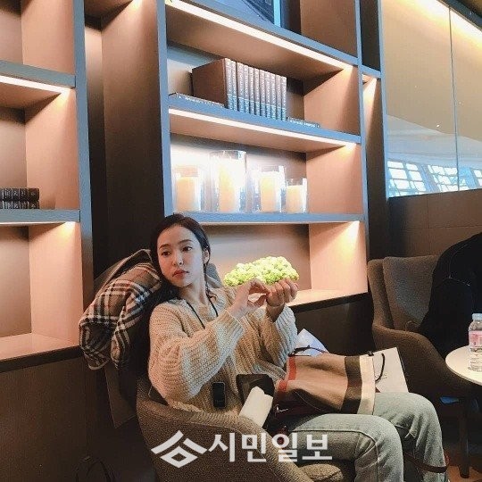 공개된 사진 속 홍자는 비행기 지연으로 인해 라운지에서 쉬는 모습이다. 그는 니트와 청바지를 입어 편안한 차림으로 손톱을 매만지고 있다.