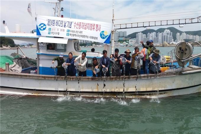 구・군에서 추진하고 있는 수산종자 매입방류사업 외에 강서구 명지에 위치한 수산자원연구소에서도 우량품종을 연구・개발하고 있는데 올해 자체 생산한 돌돔・감성돔・동남참게・넙치 등 12개 품종 1,505만여 마리를 부산 연안 해역에 무상으로 방류했으며 2020년에도 우수한 품종의 종자 생산・방류를 계획하고 있다.