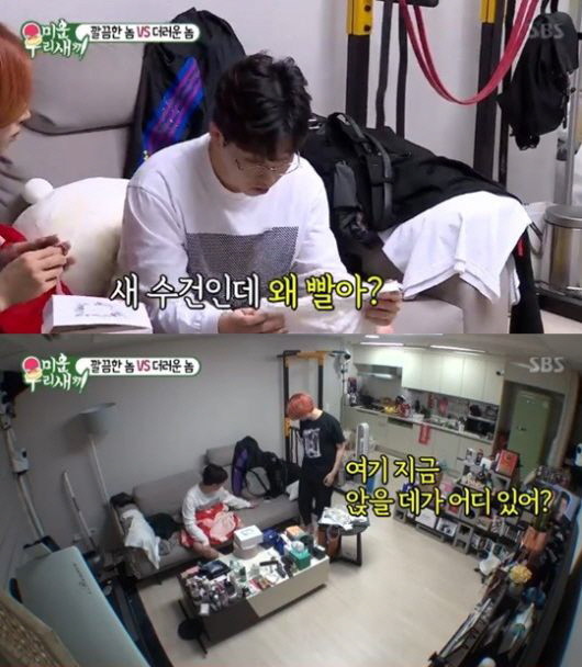 6일 방송된 SBS '미운우리새끼'에서는 깨끗한 놈 vs 더러운놈이 전파를 탔다. 김희철이 딘딘집에 놀러갔다. 딘딘은 "내일 집보러 온다고 하는데, 집을 어떻게 치워야 할 지 잘 모르겠다"고 말했다.