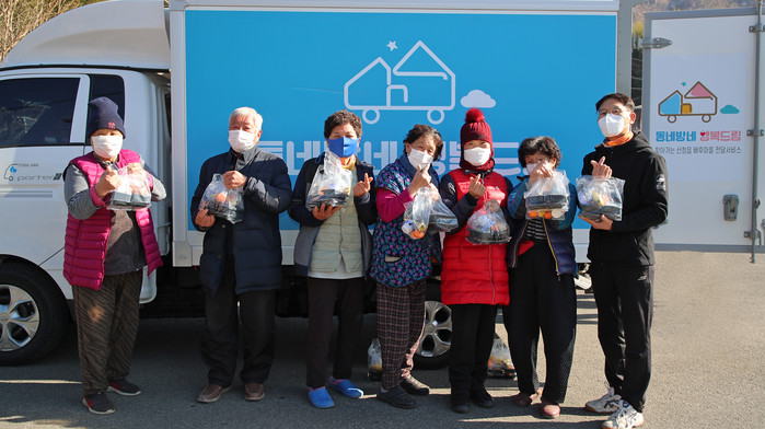 군은 코로나19로 어려움을 겪는 배후마을 노인들의 영양보충을 돕기 위해 반찬배달 서비스를 다른 서비스보다 앞당겨 시행했다.