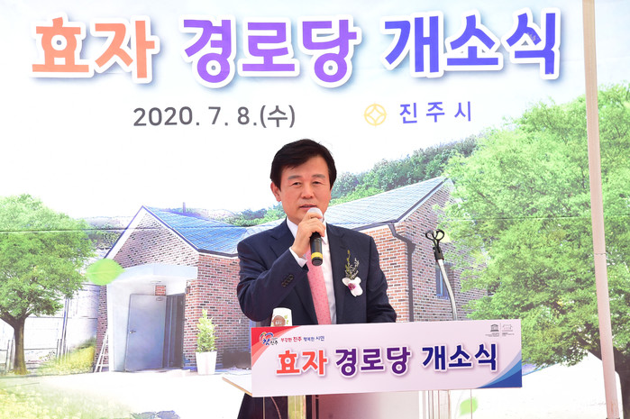 조규일 진주시장은 개소식 축하와 더불어 그 동안 코로나19로 답답해했던 어르신들을 위로하고 격려하면서“효자마을에 경로당을 신축해 어르신들을 좀 더 편안하고 쾌적한 환경에서 모실 수 있게 되어 기쁘고, 앞으로 어르신들이 항상 건강하고 행복하게 지낼 수 있도록 지원을 아끼지 않겠다.”고 밝혔다.
