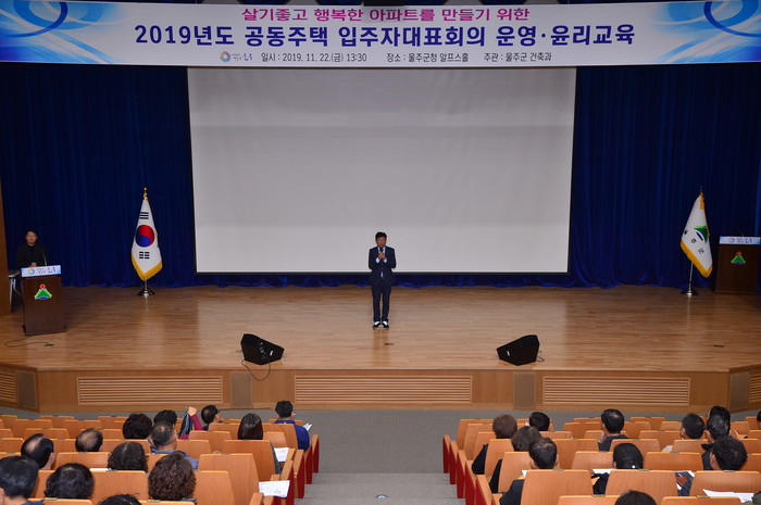울주군은 지난 22일 군청 알프스홀에서 관내 의무관리대상 공동주택 입주자대표회의 구성원을 대상으로‘공동주택 입주자대표회의 운영 및 윤리 교육을 마련했다.
