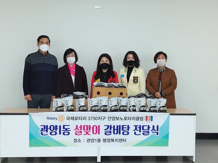[안양=최휘경 기자] 경기 안양시 보노로타리클럽은 지난 9일 동안구 관양1동을 찾아 대한민국 고유의 명절인 설을 맞아 홀몸노인들에게 전달해 달라며 팩으로 된 포장 갈비탕 100개를 전달했다.