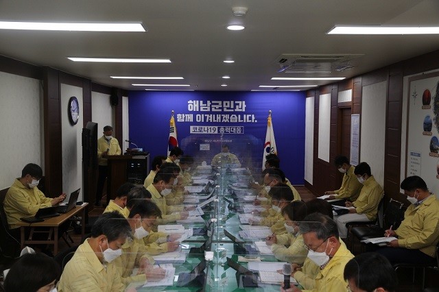 명현관 본부장은 “급박한 위기상황에 해남군 전 공직자의 역량을 총동원해 군민들의 건강과 안전을 지켜내겠다”며 “군민들도 코로나19 확산방지를 위해 사회적 거리두기 방역수칙 준수와 타 지역 방문자제에 적극 동참해 달라.”고 당부했다.