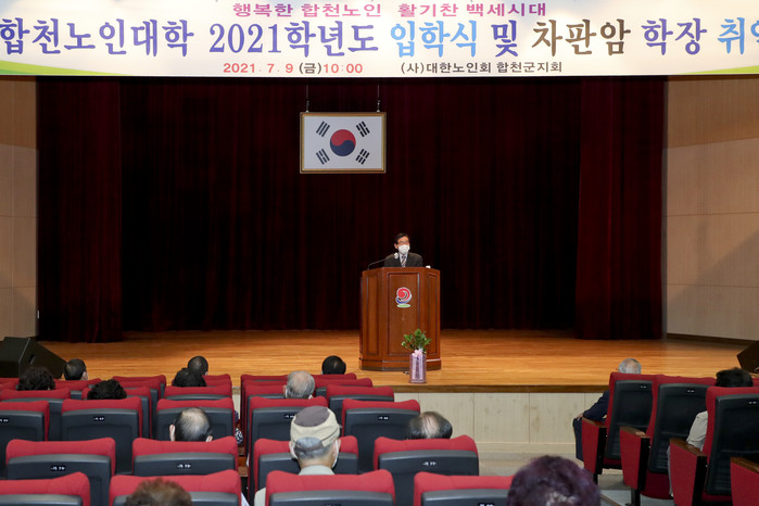 합천군(군수 문준희)은 지난 9일, 합천군 종합사회복지관 3층 대강당에서 문준희 합천군수, 배몽희 합천군의회의장, 김윤철 경남도의원을 비롯하여 이천종 노인회 합천군지회장, 차판암 합천노인대학장, 노인대학 학생 60명 등이 참석한 가운데 ‘2021년 노인대학’ 입학식을 가졌다.