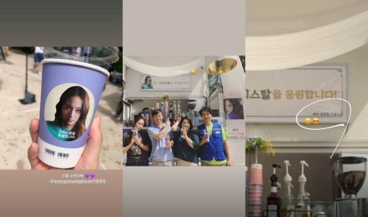 사진에는 송승헌이 보내온 커피차와 그 앞에서 영화관계자들과 함께 사진을 찍은 크리스탈의 모습이 담겼다. 크리스탈과 송승헌은 OCN 드라마 '플레이어'로 인연 맺었고, 지난 16일 종영 10개월만에 출연진 간에 모임을 가지는 등 꾸준히 인연을 이어오고 있다.