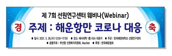 부산항선원복지위원회(의장 한국해양대학교 전영우 교수), MAC-Net, 한국해양대학교 선원연구센터는 공동으로 최근 코로나바이러스와 관련한 부산항의 검역, 해양원격의료 확대, 코로나 방역표준과 대응체계 등과 관련된 쟁점사항들을 깊이있게 토론하는 웨비나를 한국선주협회의 후원을 받아 2021년 5월 26일 14:00∼17:00 한국해양대학교 해사대학관 1층 KSA 라운지에서 개최한다.