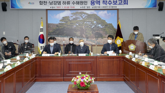 합천군, 진주시, 사천시 시·군 주민대표, 정부·지자체추천 외부전문가, 지자체 관계자는 22일 합천군의회 간담회장에서 ‘합천·남강댐 하류 수해원인 조사협의회 용역 착수보고회를 가졌다.