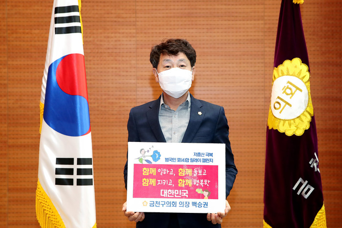 [시민일보 = 여영준 기자] 서울 금천구의회 백승권 의장은 저출산 문제 극복을 위해 최근 '저출산 극복 범국민 포(4)함 릴레이 챌린지'에 동참했다.