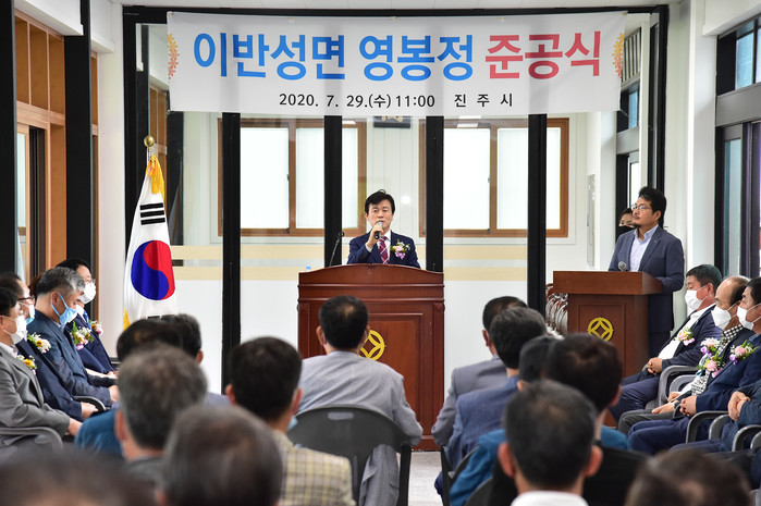 이날 행사는 새롭게 단장한 영봉정 리모델링 준공식을 축하하기 위해 조규일 진주시장, 이상영 진주시의회 의장 등 60여 명이 참석한 가운데 환영사와 축사, 테이프 커팅 순으로 진행됐다.
