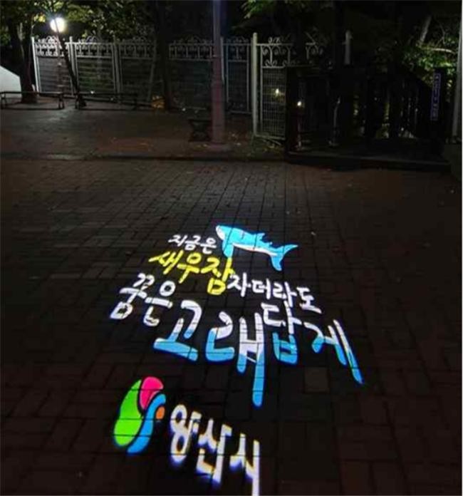 양산시 전역에 시정홍보 및 범죄예방 등의 다양목적으로 활용되는 고보조명(로고젝터)설치를 통하여 야간조명환경 개선 사업을 활발히 진행하고 있다.