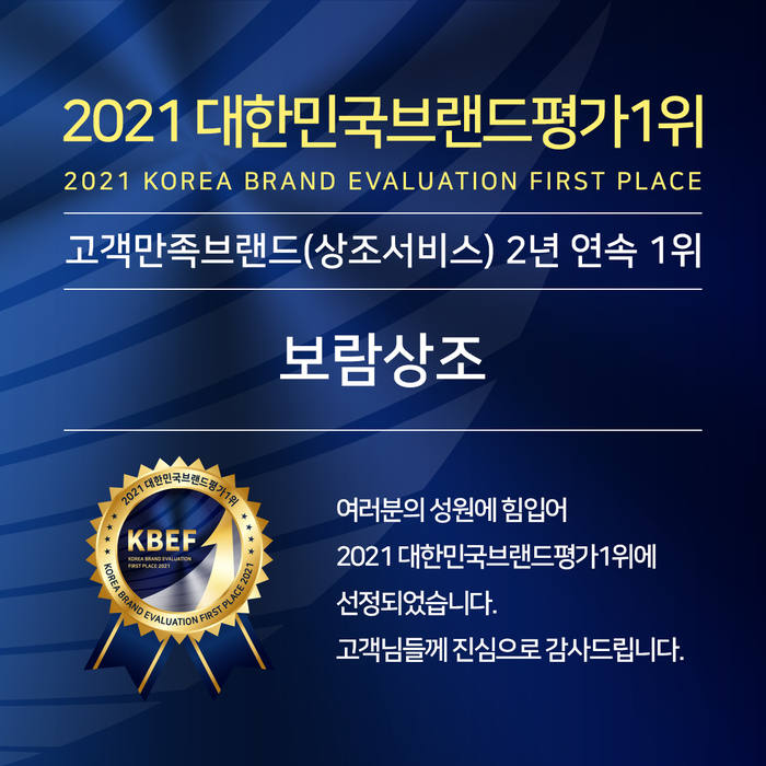 [시민일보 = 여영준 기자] 보람상조가 ‘2021 대한민국브랜드평가1위’ 고객만족브랜드(상조서비스) 부문에 2년 연속 선정됐다.