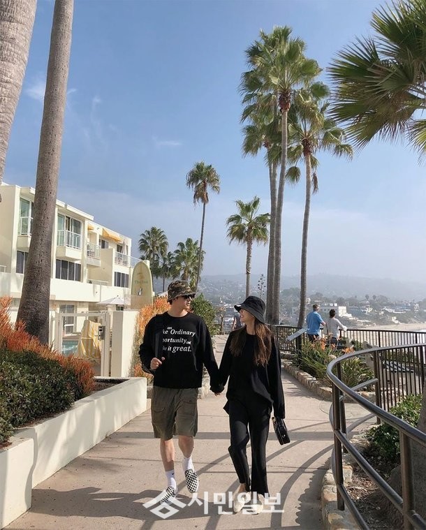 공개된 사진 속 그는 남자친구인 오창석과 함께 손을 잡고 걸으며 밝은 미소를 짓고 있는 모습으로 달달함을 자아냈다.