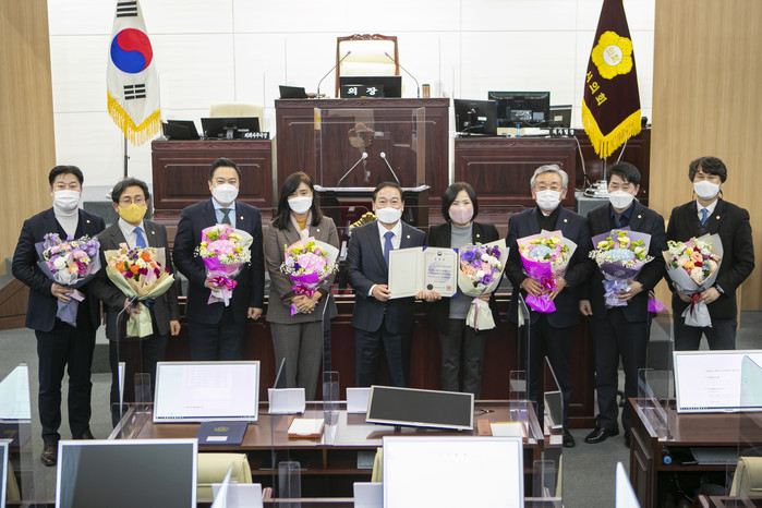 이번 시상은 코로나 19 확산 상황을 고려해 별도로 진행하지 않고 지난 23일 제199회 임시회 제2차 본회의 종료 후, 서철모 화성시장이 전달하고 원유민 의장이 수여하는 방식으로 진행했다.