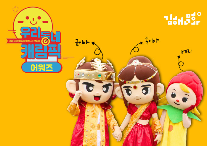 김해문화재단은 관광사업본부의 공식 캐릭터들이 <제3회 우리동네캐릭터 대상>에 동반 출전했다고 밝혔다. 우리동네캐릭터 대상은 국내 캐릭터 산업의 부흥을 위해 문화체육관광부가 주최하고 한국콘텐츠진흥원이 주관하는 행사로 올해 3회째를 맞이한다.