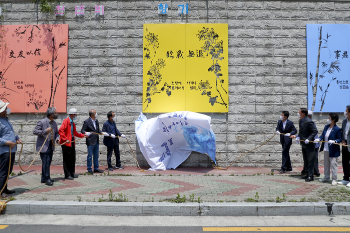 문준희 합천군수는 기념사에서 “단체작업과 코로나19의 특수한 상황에서 모든 참가자가 적극 협조하여 작품의 완성도를 높인 점에 대하여 감사를 표시하고, 이번 작품제막을 시작으로 지역에서 다양한 공공예술 활동이 이루어지기를 기대한다”고 말했다.