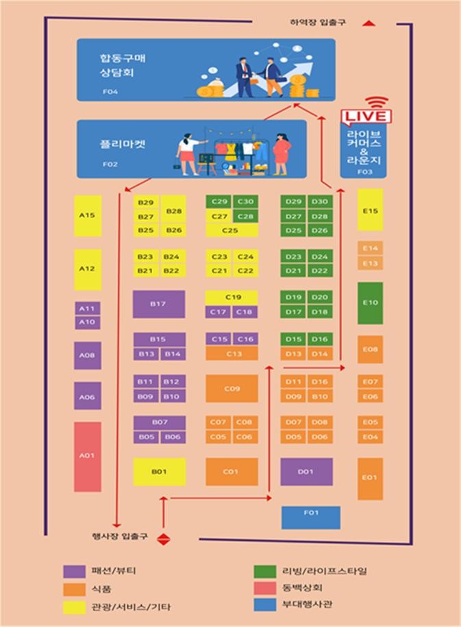 또한, 부산바다를 모티브로 한 톡톡 튀는 디자인의 아이웨어 브랜드 ‘글래스비치’, 젊은 부산 신발 디자이너들이 참여한 신발 편집샵 ‘파도블’ 공동관, 부산지역 우수제품 쇼핑샵 ‘동백상회’ 공동관, 부산 우수 창업기업 쇼핑샵 ‘크리에이티브샵’, 부산 관광 기념품 판매 ‘하이부산! 바이부산!’ 공동관 및 부산의 식품, 뷰티, 패션, 건강, 리빙, 관광분야의 우수 부산 중소상공인들의 판매 부스와 플리마켓이 운영될 예정이다.