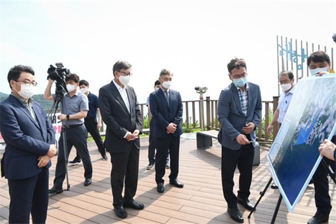 현장에서 전문가와 가덕도 신공항 건설 방향 논의, 이어 K-water 사장과 부산 물 문제 해결 등을 위한 상호 협력 추진 약속