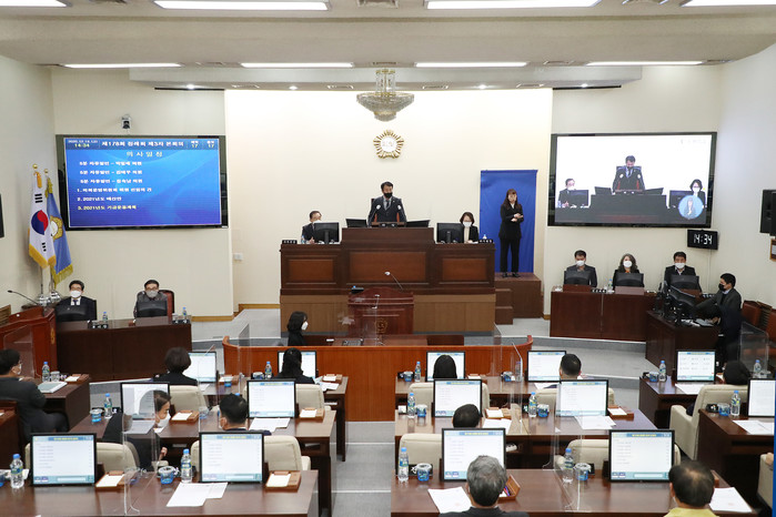 이날 임정섭 의장은 폐회사를 통해, 한 해 동안 열정적으로 의정활동을 펼친 의원들과 성실한 자세로 의정활동에 적극 협조해 준 집행부 공무원의 노고에 감사의 인사를 전하며, 심사과정에서 제시된 의견 및 대안에 대해서는 시민의 입장에서 긍정적으로 검토하고, 의회와의 소통과 협의를 통해 시정에 적극 반영해 줄 것을 당부하였다. 그리고, 우리에게 주어진 시간들을 돌이켜보며 더 나은 내일을 꿈꾸고 더 새로운 다음 해를 맞이하기 위해서는 일신우일신(日新又日新)해야 하며, 코로나19로 인해 요즘 같이 어려운 시기에는 노블리스 오블리제(Noblesse Oblige)정신이 필요함을 강조하였다. 다사다난했던 2020년을 되새기며 2021년에는 코로나19가 종식되고 하루빨리 평범한 일상을 되찾을 수 있기를 염원하며 발언을 마무리하였다.