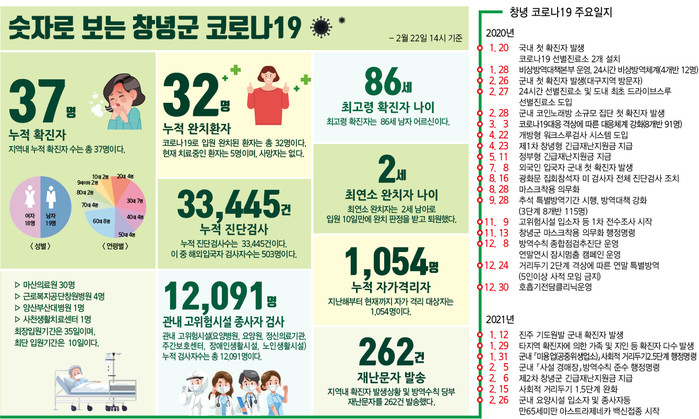 | ▲ 숫자로 보는 창녕군 코로나19(2021년 2월 22일 14시 기준) |