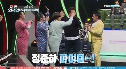정준하는 후배 코미디언들이 공연을 펼칠 시간을 벌어주기 위해 열심히 문제를 맞히는 모습을 보이며 훈훈한 분위기를 이어갔다.
