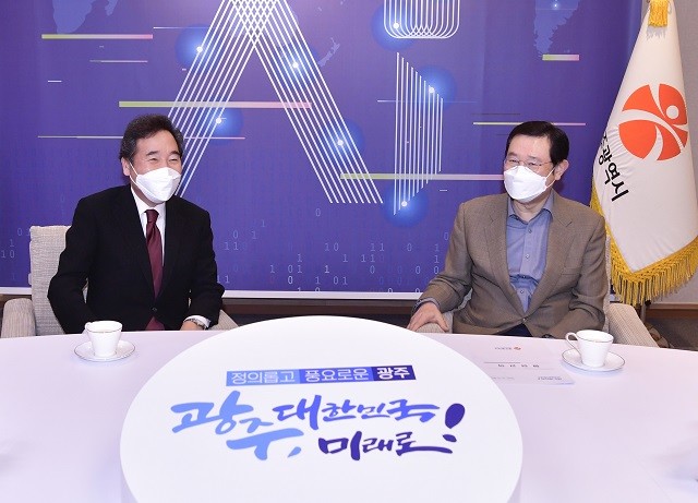 [광주=정찬남 기자] 이용섭 광주광역시장이 24일 광주를 방문한 더불어민주당 이낙연 대표를 만나 △광주 군 공항 이전사업 △5‧18민주화운동 등에 관한 특별법 개정 △5‧18국립묘지 제2묘역 침수 대책 등 주요 현안들에 대한 당 차원의 적극적인 협조를 요청했다.