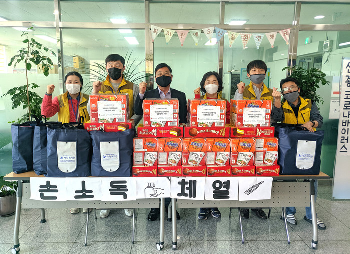 한 가정당 8만원 상당의 물품으로 구성됐으며, 위생용품(손소독제, 물티슈)과 라면, 즉석밥, 반찬류 등의 간편식이 포함돼 있다.