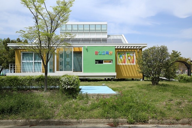 | ▲ 광주제1하수처리장 내에 조성된 환경교육관(작은 도서관) 전경 / 광주환경공단 제공 |