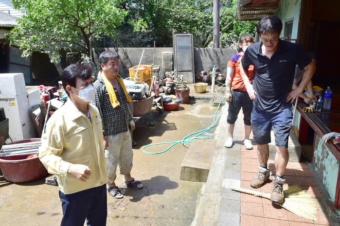 한편, 이날 오후 진주시자원봉사단체협의회(회장 방만혁) 80여명과 공군교육사령부 장병 40여명은 내동면 수해현장을 방문, 주택 내‧외부 집기류 및 토사 정비 등을 도왔으며, 진주시자원봉사센터에서는 간식과 점심을 제공하여 수해복구에 힘을 보탰다.