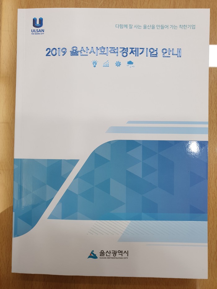 울산시는 2019년 말 기준 ‘울산 사회적경제기업 안내’ 책자를 제작하여 4월 중 시, 구‧군, 산하기관, 혁신도시 공공기관 등 유관기관, 지역 유통업체 등에 배부할 계획이다.