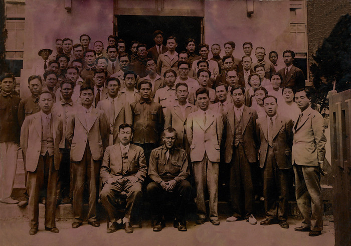| 해방과 동시 미군정 미군시장(美軍市長)과 기념촬영 |