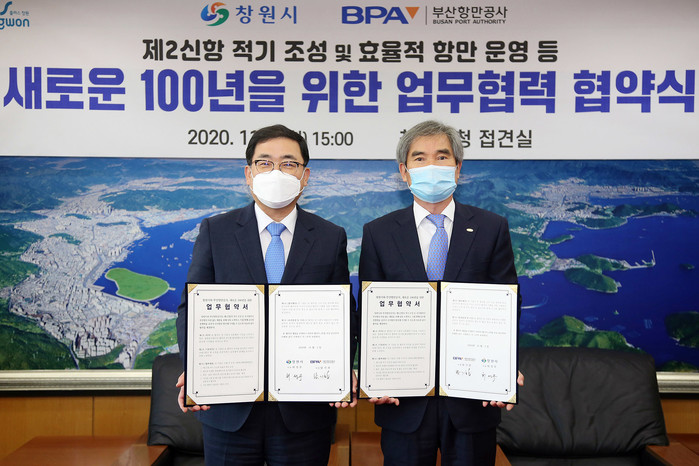 부산항만공사 남기찬 사장과 창원시 허성무 시장은 3일 오후 3시에 창원시청에서 ‘부산항과 창원시, 새로운 100년을 위한 업무협약(MoU)’을 체결했다.