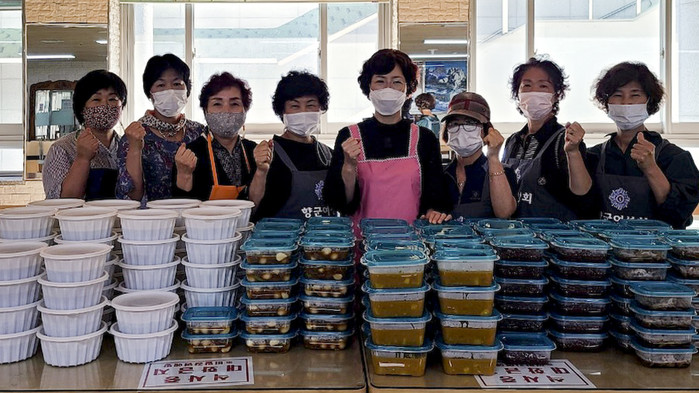 이날 회원 10여명은 소고기미역국, 소고기장조림, 카레 등 7종의 밑반찬을 준비했으며, 코로나19로 인한 사회적 거리두기로 위생수칙을 준수하며 대면을 최소화하여 진행했다.