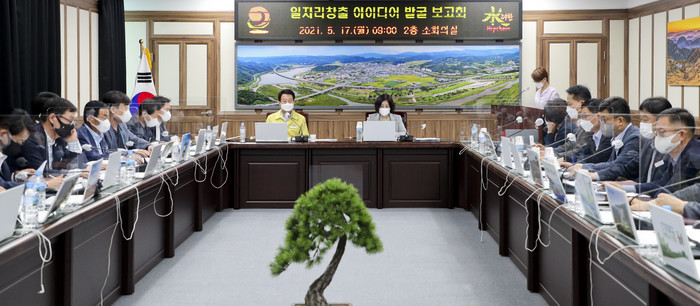 합천군(군수 문준희)은 2021년 올 한 해 군정 최고의 목표를 일자리 창출에 두고, 그 일환으로 일자리창출 아이디어 발굴 보고회를 17일, 합천군청 2층 소회의실에서 군수 주재로 개최했다.