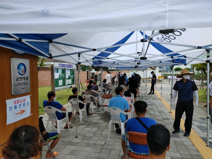 | ▲ 해남군이 송지면에서 지난 26일 이후 코로나19 확진자가 추가 발생해 전 면민을 대상으로 임시선별진료소를 운영하고 있다. / 사진=해남군 제공 |