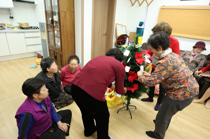 경로당별로 어르신들이 새해 소망을 적은 카드와 각종 장식으로 트리를 꾸민다. 전문강사가 레크리에이션, 행사진행 등을 통해 트리 만들기 활동을 돕는다.