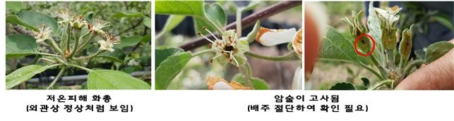또한, 저온피해가 심각한 과수원은 열매 달림이 적으면 나무 자람세(수세)가 강해져 이듬해 생육과 꽃눈분화에도 부정적 영향을 주므로, 상품성이 낮은 과일도 따내지 말고 키워야 한다.